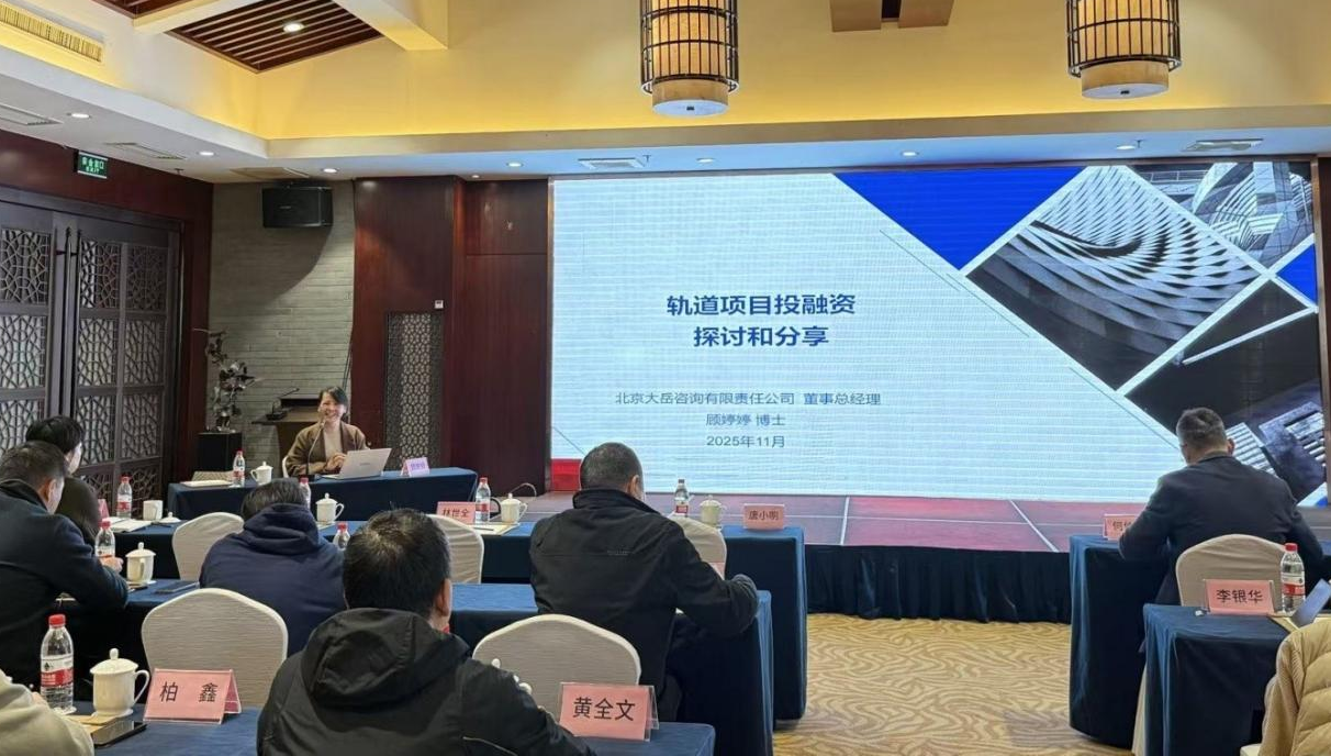 為進(jìn)一步拓展視野,提高湖州市軌道交通隊(duì)伍的專業(yè)化水平,湖州市軌道交通建設(shè)管理服務(wù)中心于2025年11月19日至21日在長(zhǎng)興縣舉辦全市“軌道交通大講堂”培訓(xùn)班。市發(fā)展改革委、市交通運(yùn)輸局、區(qū)縣(鐵辦)等相關(guān)單位積極參與,共同推動(dòng)此次培訓(xùn)活動(dòng)的順利開展。本次培訓(xùn)班邀請(qǐng)了大岳咨詢董事總經(jīng)理顧婷婷博士作為專家,于11月19日下午圍繞“軌道項(xiàng)目投融資探討和分享” 這一主題,開展了一場(chǎng)深入且精彩的專題授課。