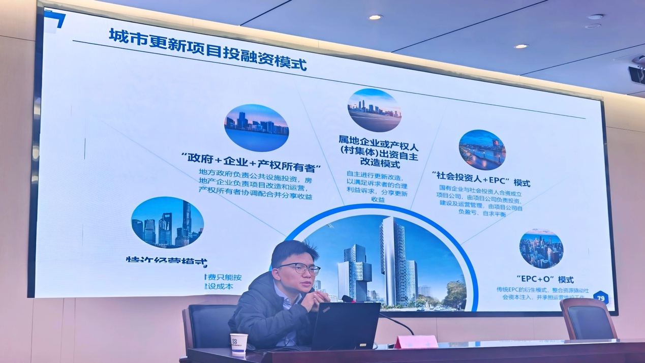 潘杰以城市更新政策導(dǎo)向作引,對現(xiàn)階段城市更新主要任務(wù)進(jìn)行深入淺出的介紹,并結(jié)合地方城市更新工作要點(diǎn),為與會人員詳細(xì)介紹了各類上級資金與城市更新項(xiàng)目的適配性。并結(jié)合以舊換新實(shí)施案例,對城市更新工作推進(jìn)方向及推進(jìn)重點(diǎn)抽絲剝繭,幫助與會人員更好理解城市更新項(xiàng)目實(shí)施要點(diǎn)。