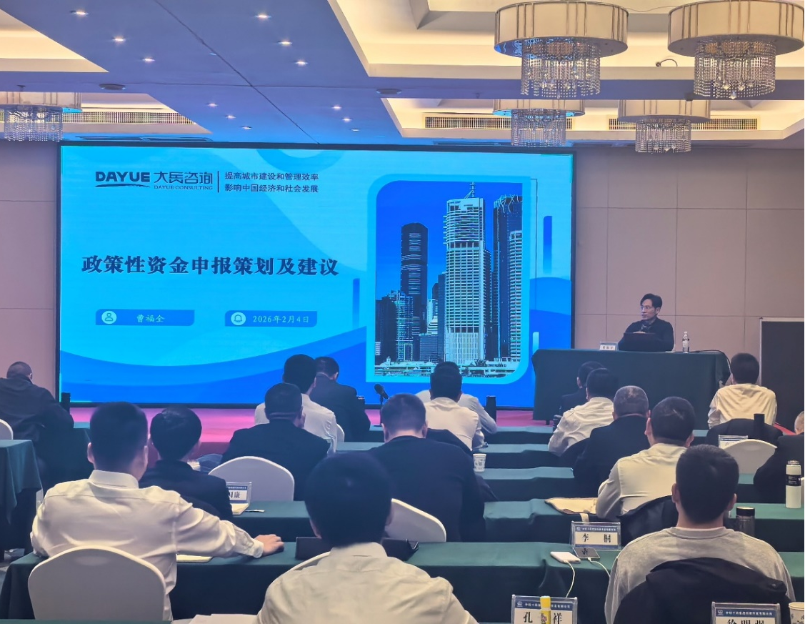 2026年2月4日,大岳咨詢受邀為中鐵十局投資公司開展專題培訓,大岳咨詢董事總經(jīng)理曹福全、高級經(jīng)理郭新超、朱海航、潘杰受邀參加。本次培訓緊密圍繞國家及地方最新出臺的基礎(chǔ)設(shè)施投融資政策導向,從向上資金申請、基礎(chǔ)設(shè)施投融資市場分析、特許經(jīng)營政策解讀、城市更新運作模式等方面做了分享。